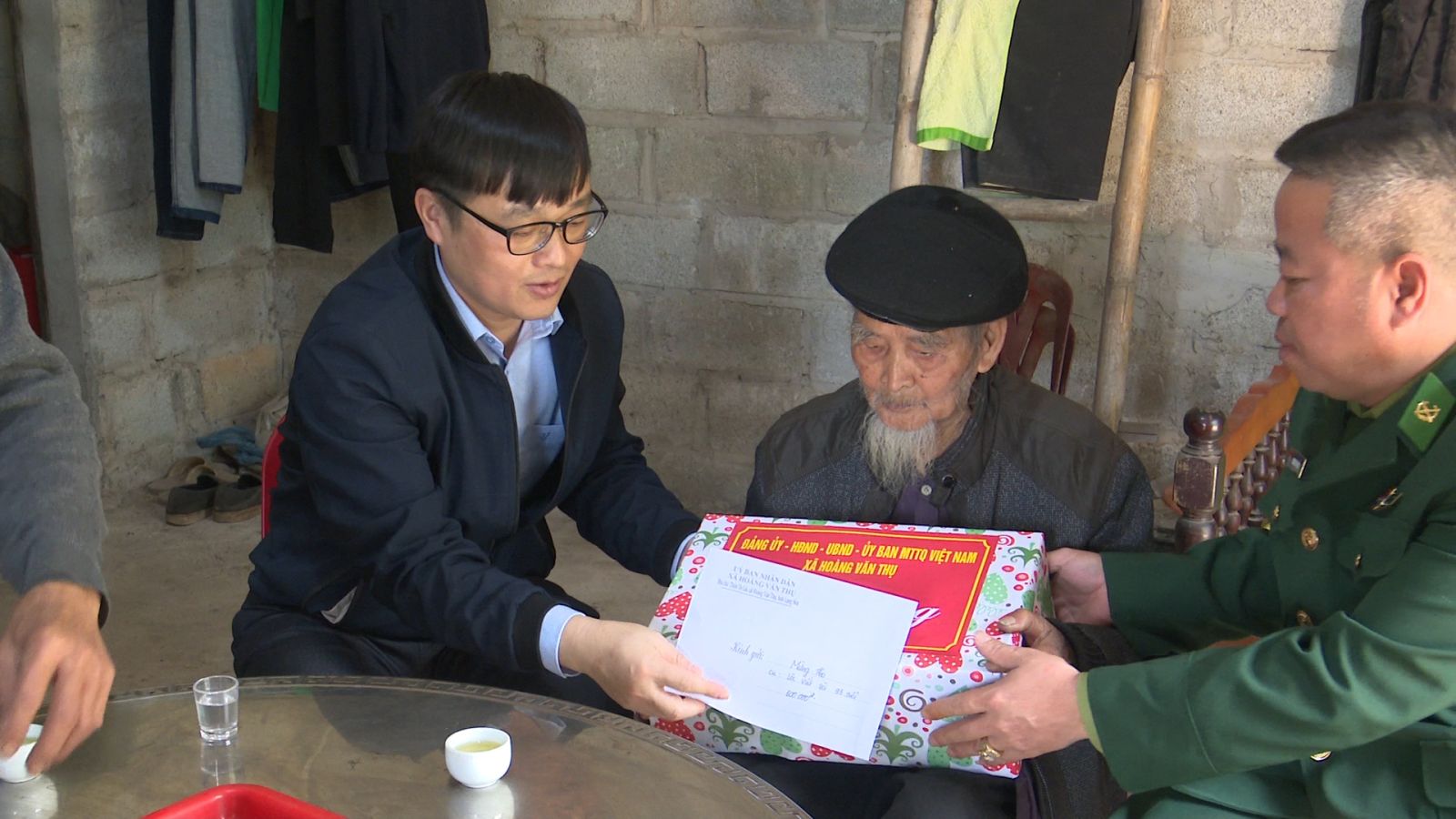 Đồng chí Bế Văn Kiên – Phó Bí thư Thường trực Đảng ủy xã thăm, tặng quà và chúc thọ người cao tuổi