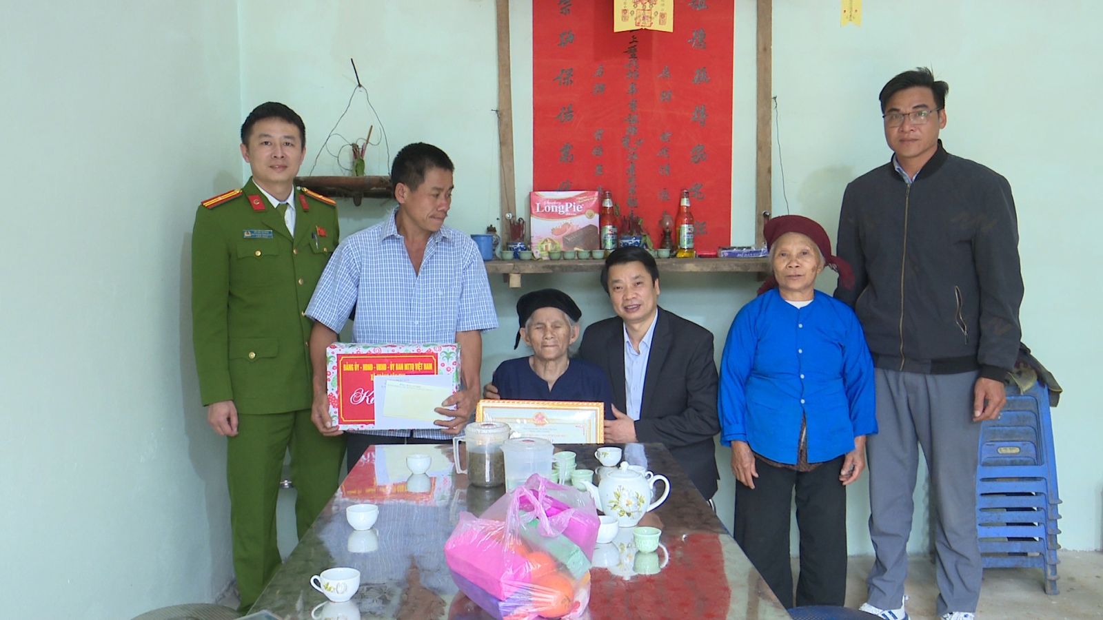 Trong dịp này, các đoàn đã đến thăm và chúc thọ 04 cụ gồm cụ Chu Thị Sao sinh năm 1936 trú tại thôn Pá Đa; cụ Chu Thị Slam sinh năm 1931 trú tại thôn Pò Cại, cụ Lý Thị Sinh, sinh năm 1936 trú tại thôn Cốc Nam; cụ Lục Thị Ken sinh năm 1936, trú tại thôn Cốc Nam. Tại các gia đình đến thăm đồng chí Bí Thư đảng ủy xã đã ân cần thăm hỏi sức khỏe, đời sống của các cụ và gia đình; đồng thời trao quà, gửi lời chúc các cụ luôn mạnh khỏe, sống vui, sống thọ, tiếp tục là tấm gương sáng cho con cháu noi theo.