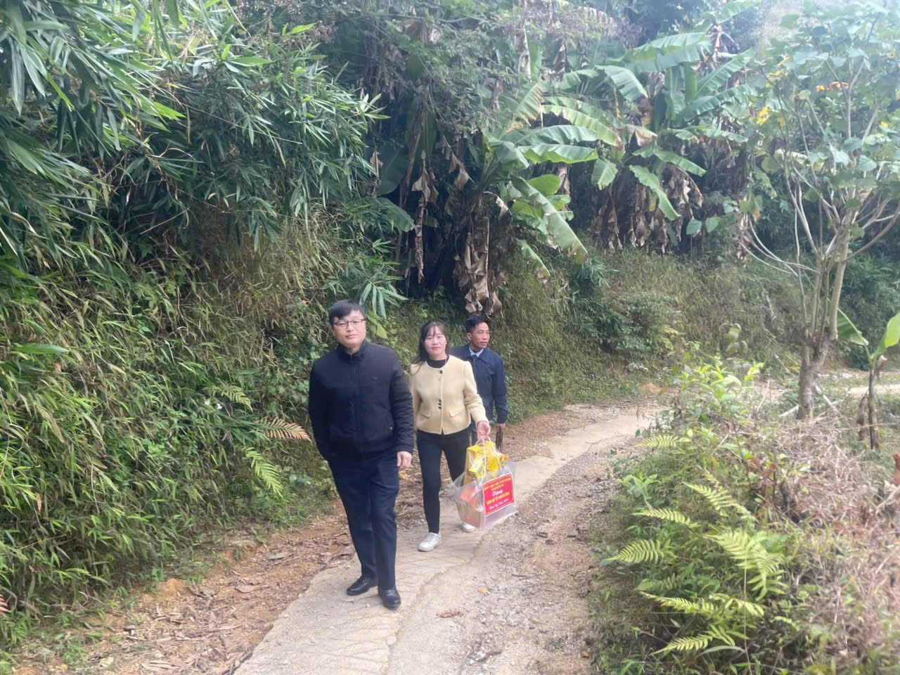 Các gia đình được thăm, tặng quà gồm: ông Hoàng Quốc Khợ, thương binh, thôn Thuận Lợi; ông Vy Ngọc Linh, thương binh, thôn Quyết Tiến; và bà Trần Thị Bao, vợ liệt sĩ, thôn Khun Phung, xã Hoàng Văn Thụ.