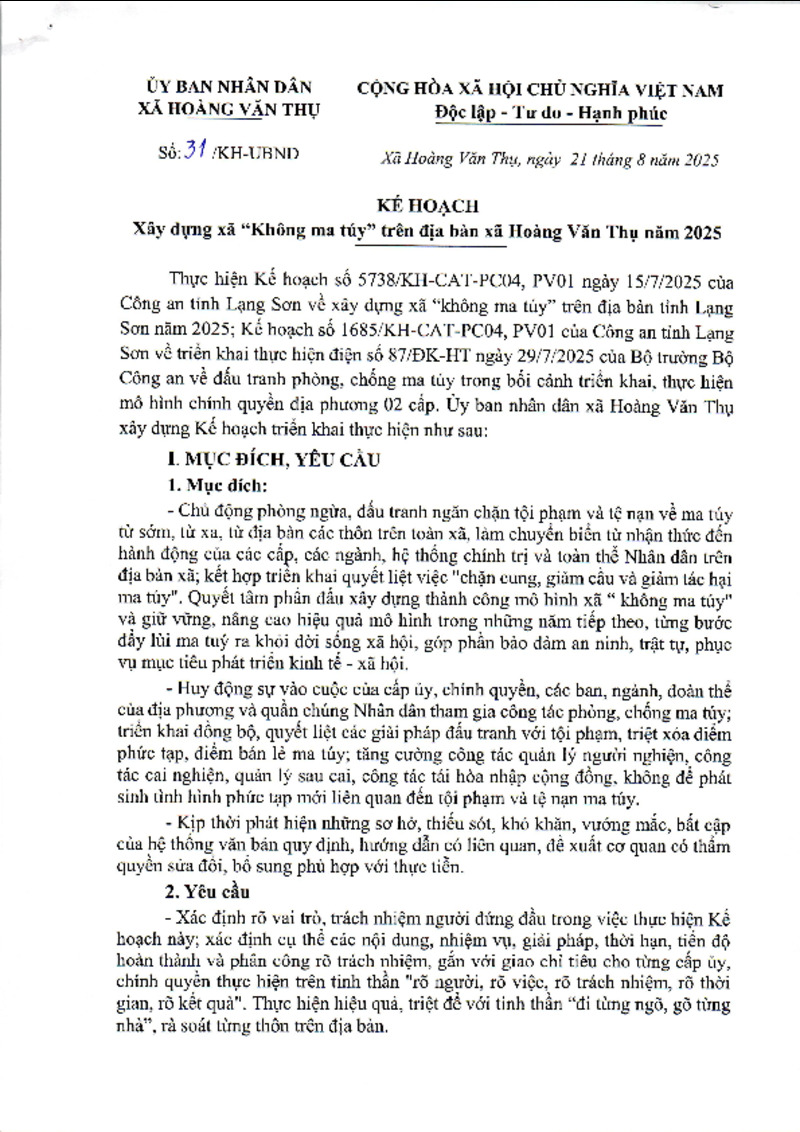 Tiêu đề văn bản | Kế hoạch xây dựng xã không ma túy | ||