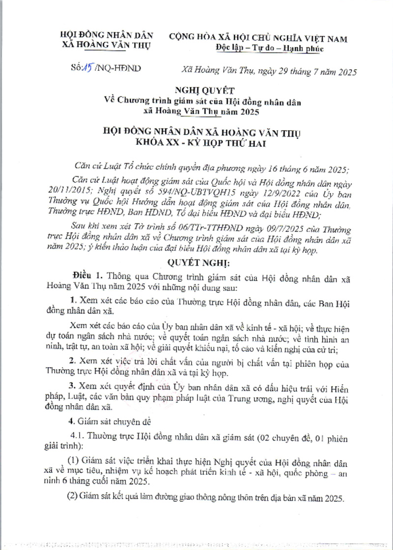 Tiêu đề văn bản | Nghị quyết về Chương trình giám sát của Hội đồng nhân dân xã Hoàng Văn Thụ năm 2025 | ||