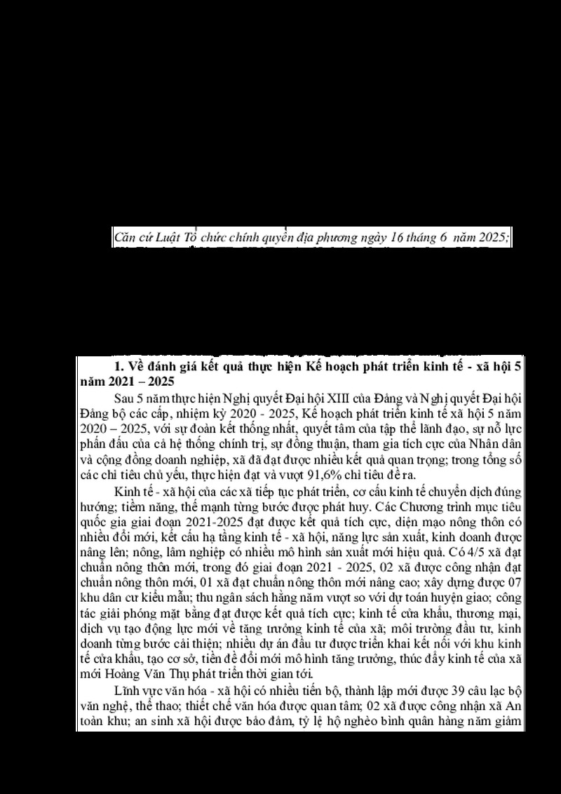 | Tiêu đề văn bản | Nghị quyết Về Kế hoạch phát triển kinh tế - xã hội 5 năm 2026 - 2030 xã Hoàng Văn Thụ | ||