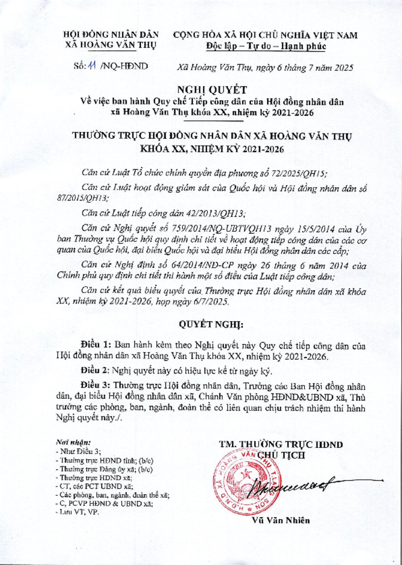 Tiêu đề văn bản | Nghị quyết Về việc ban hành Quy chế tiếp công dân của Hội đồng nhân dân xã Hoàng Văn Thụ khóa XX, nhiệm kỳ 2021-2026 | ||